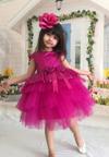 Çocuksan Baby&Kids Wear Kız Çocuk Abiye Elbise Tüllü Katlı Pul Payetli Fuşya Mezuniyet Düğün Doğum Günü