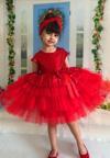 Çocuksan Baby&Kids Wear Kız Çocuk Abiye Elbise Tüllü Katlı Pul Payetli Kırmızı Mezuniyet Düğün Doğum Günü