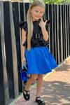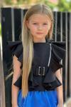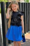 Kız Çocuk Asimetrik Kesim Kemer Detaylı Bluz Mavi Etekli Takım