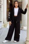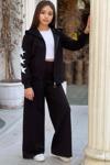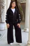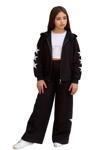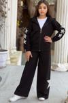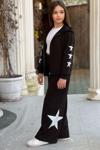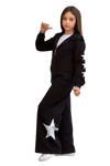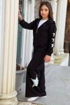 Kız Çocuk Askılı Crop Fermuarlı Star Baskılı Bol Kesim Siyah Eşofman Takım