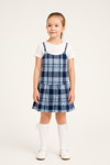 Kız Çocuk Askılı Ekose Elbise & Likralı Penye Tişört – Pileli Etekli