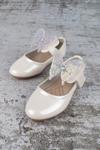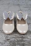 Kız Çocuk Ayakkabı Cırtlı Kelebek Taşlı Babet Sedef