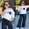 KIZ ÇOCUK KAZ AYAĞI PANTOLONLU OMUZ MODELLİ İKİLİ TAKIM - Image 1