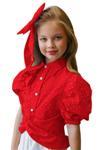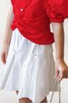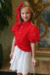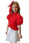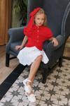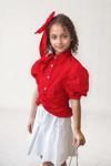 Kız Çocuk Balon Kol Üzeri Boydan Taş İşleme Asimetrik Kesim Kırmızı Gömlek Çiçek Motif Etekli Takım
