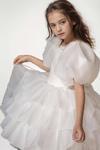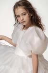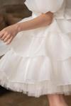 Kız Çocuk Balon Kollu Eteği KatKat Fırfırlı İçi Astarlı Beyaz Abiye