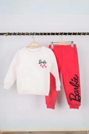 NSE Collection Kız Çocuk Barbie Baskılı Fuşya 3 İplik Şardonlu Kışlık Sweat ve Eşofman Alt Üst Takım