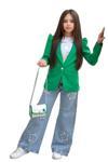 Riccotarz Kız Çocuk Baskılı T-shirt Bol Kesim Yıldız Detaylı Jean Pantolon Yeşil Blazer Ceket Alt Üst Takım