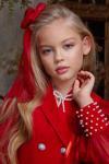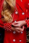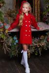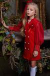 Kız Çocuk Bilekleri İnci Boncuk İşlemeli Kolları Şeffaf Kumaş Taş Düğme Detaylı Kırmızı Elbise
