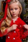 Riccotarz Kız Çocuk Bilekleri İnci Boncuk İşlemeli Kolları Şeffaf Kumaş Taş Düğme Detaylı Kırmızı Elbise