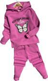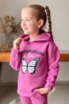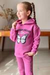 Kız Çocuk Bilekleri ve Paçası Lastikli Kelebek ve Yazı Figürlü Fuşya Eşofman Takım