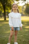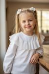 Zarif ve sade tasarımıyla dikkat çeken bu bluz, minik prenseslerin gardırobunun vazgeçilmezi olacak.