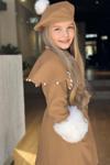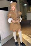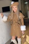 şal detaylı kol uçları peluş detaylı kemerli kaşe. Şapka ve çanta dahildir.