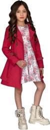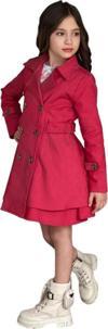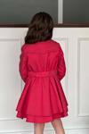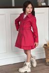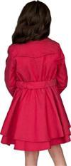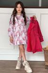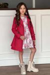Kız Çocuk Çiçek Desenli Piliseli Kırmızı Trençkotlu Elbise