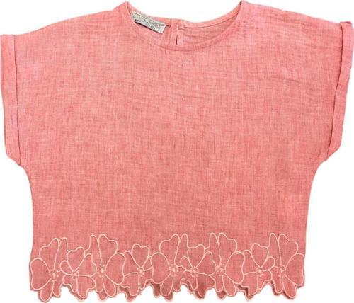 Kız Çocuk Çiçek Nakışlı Keten Takım