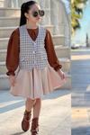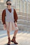 Çizgili,sahte cep ve düğme detaylı kolsuz cepken.