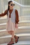Kız Çocuk Çizgili Cepken ve Gömlek Yaka Yeşil Bluz Etekli Takım