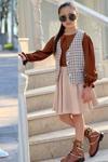 Ürün Bilgisi : %80 pamuklu, gömlek yaka,balon kol kahverengi bluz.