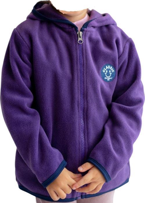 Kız Çocuk Classic Yazı Nakışlı Kapüşonlu Fermuar Kapamalı Cepli Mor Renk Polar Hırka