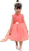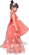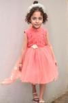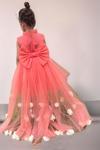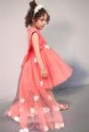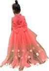 Kız Çocuk Dik Yaka Beli Manşetli Çiçek Detaylı Kuyruklu Kabarık Mercan Abiye