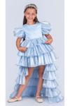 Kız Çocuk Eklenebilir Kuyruk Detaylı, Taçlı Aspendos Abiye Elbise M00758 MAVİ
