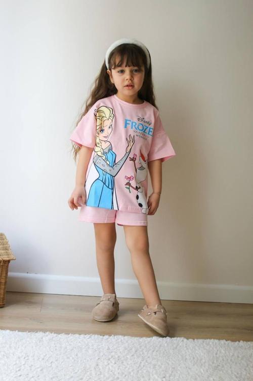 - Elsa Frozen baskılı t-shirt ve şorttan oluşur.
