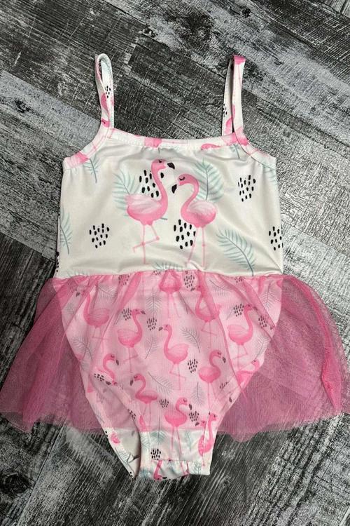 Kız Çocuk Filamingo Desenli Tüllü Pembe Mayo