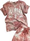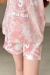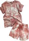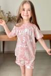 Kız Çocuk Florida Yazı Baskılı Penye T-Shirt Pudra Şortlu Takım