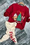 Kız Çocuk Friends Yazı ve Noel Ağacı Detaylı Kırmızı Taytlı Takım