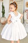 Kız Çocuk Göğsü Taş İşlemeli ve Fırfır Detaylı Beyaz Abiye