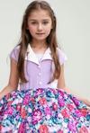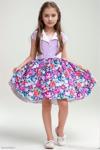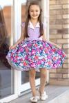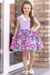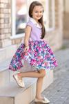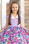 Kız Çocuk Gömlek Yaka Çiçek Baskılı Lila Elbise