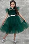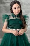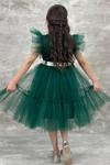 Kız Çocuk Gömlek Yaka Göğsü Ve Kolları Tül Detaylı Wednesday Yeşil Elbise