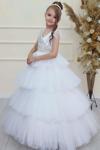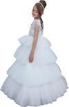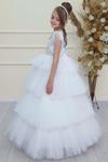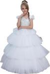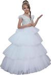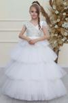 Kız Çocuk Gövdesi İnci Taş İşlemeli Kat Kat Tüllü Kolsuz Beyaz Abiye