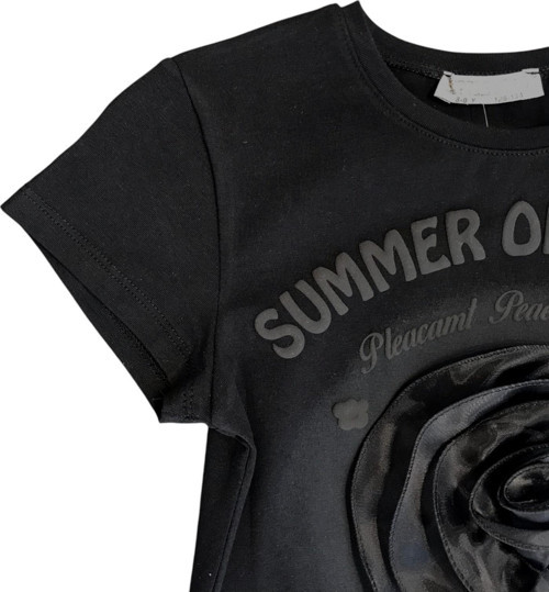 Kız Çocuk Gül Aksesuarlı Bağlamalı Tshirt