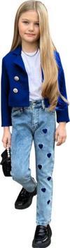 Riccotarz Kız Çocuk Gümüş Düğme Detaylı Lacivert Blazer Ceket Kalp Detaylı Jean Pantolon Alt Üst Takım 2251205017
