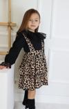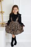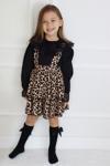 Parla Kids Kız Çocuk Helen Leopar Askılı Katlı Bağlama Jile Elbise Dantel Detay Uzun Kollu Bluz Takım TKM-0190.57