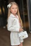 Kız Çocuk İnci Detaylı Güpür İşlemeli Çiçek Baskılı 4'lü Beyaz Alt Üst Takım