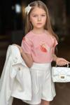 Ürün bilgisi: %80 pamuklu, güpür işlemeli, inci detaylı, sahte cepli,uzun kollu ceket. Çiçek baskılı tişört. beli lastikli, güpür işlemli, inci detaylı şort. taç dahildir. Toplam dört parça: çeket, tişört, şort ve taç