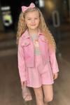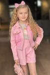 Kız Çocuk İnci Detaylı Güpür İşlemeli Çiçek Baskılı Pembe Alt Üst Takım