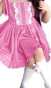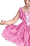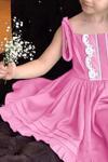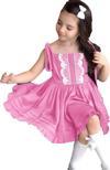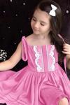 Kız Çocuk İp Askılı Bağlamalı Göğsü Dantel İşlemeli Pileli Pembe Keten Elbise