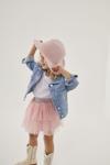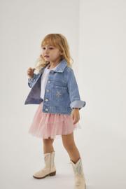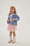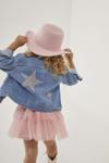 Kız Çocuk Jean Ceket & Tütülü Etek Takımı – Simli Yıldız Detaylı, 2–8 Yaş
