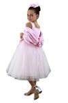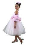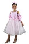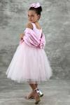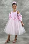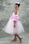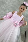 Kız Çocuk Kare Yaka Sıfır Kol Eteği Tüllü Kabarık Saten Kolluk Detaylı Pembe Abiye