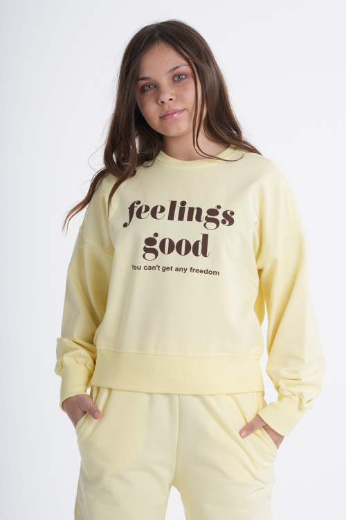 Unisex Çocuk & Genç "Feelings Good" Sweatshirt ve Cargo Eşofman Takımı