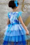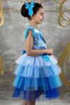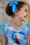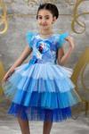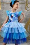 Kız Çocuk Karlar Kraliçesi Baskılı Üstü Pulpayet Tüllü Mavi Elbise