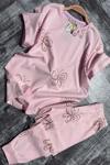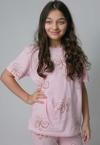 Kız Çocuk Kelebek Desenli T-Shirt Pembe Pijama Takımı 8-14 Yaş