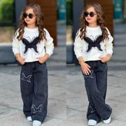 Minik prenseslere özel tasarlanan Kız Çocuk Kelebek Figürlü Kot Pantolon Takımı, zarif detayları ve rahat kalıbıyla hem günlük kullanım hem de özel günler için ideal bir seçimdir. Üst kısmındaki kelebek figürleri tatlı bir görünüm sunarken, kaliteli kot pantolon ile kombinlenerek modern bir tarz oluşturur.
