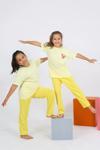 Bu canlı ve neşeli kız çocuk pijama takımı, hem rahat hem de şık bir uyku deneyimi sunmak için özel olarak tasarlanmıştır. Üst kısmı kısa kollu ve alt kısmı rahat kesim pantolon ile tamamlanan bu takım, çocuğunuzun gece boyunca rahat hareket etmesini sağlar. Parlak sarı rengi ve üzerinde yer alan kalp deseniyle dikkat çeker.