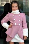 Kız Çocuk Kol Uçları Peluş Detaylı Lady Pudra Kaşe Kabanlı Takım