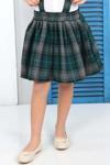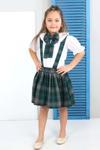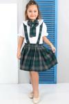 Kız Çocuk Kolları Fırfırlı Bebe Yaka Gömlek Üzeri Kare Çizgili Etekli Yeşil Salopet
