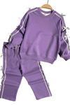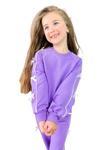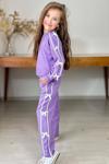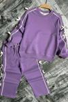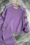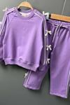 Kız Çocuk Kolları ve Gövdesi Fiyonk Şerit Detaylı Lila Eşofman Takım