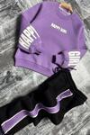 Kız Çocuk Kollarında ve Göğsünde Girl Yazı Detaylı Lila Sweat Şerit Detaylı Eşofman Takım